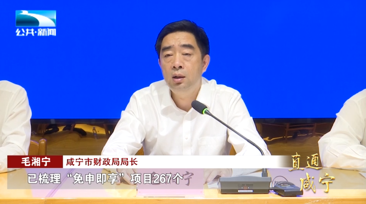 咸宁市财政局局长 毛湘宁:“目前6个县市区和咸宁高新区,已梳理‘免申即享’项目267个,预计拨付资金达2亿元。