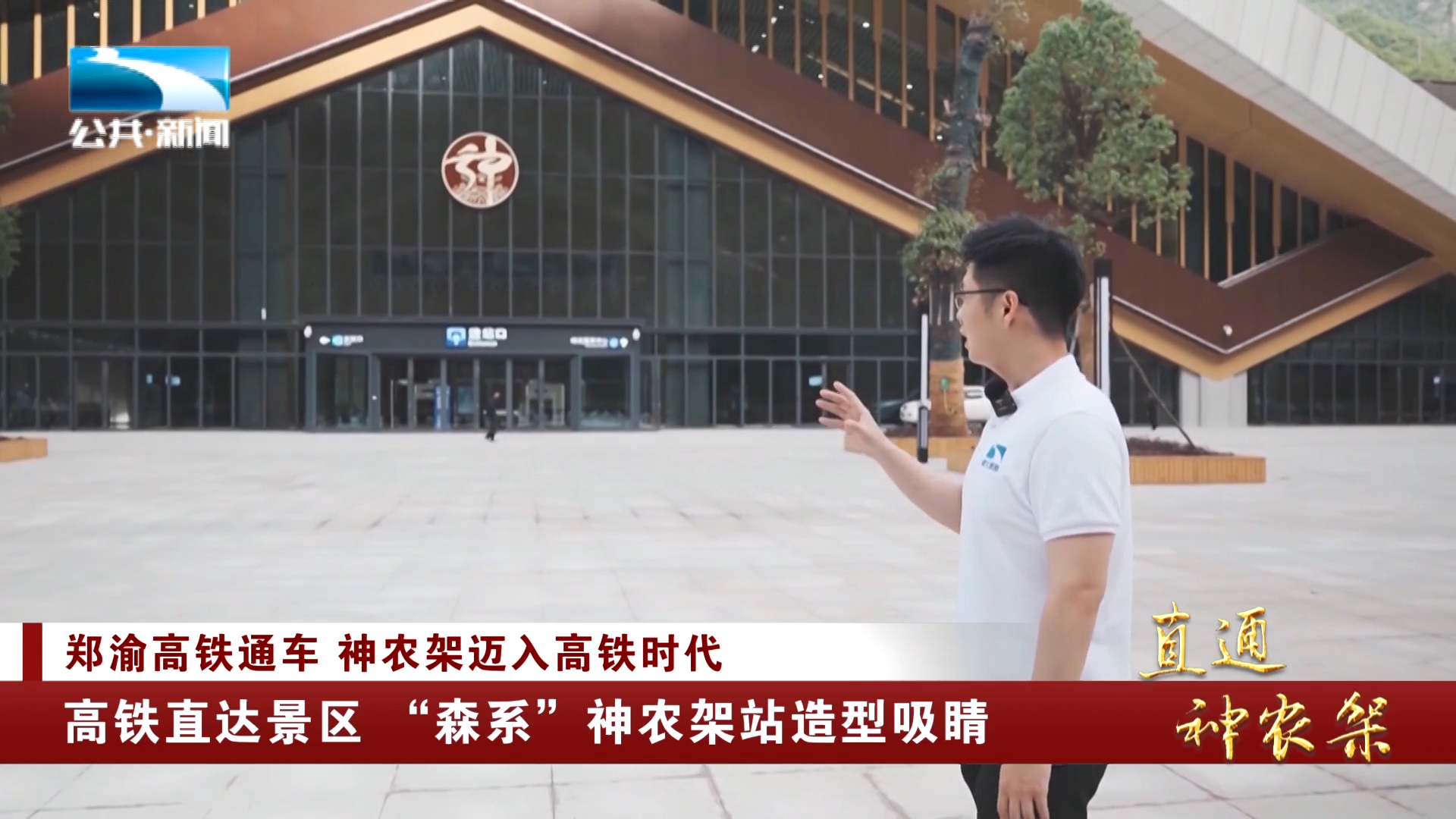记者 张楠:“我们已经来到神农架的这个站前广场了,因为我特别想看一看,首次通高铁的神农架,它的这个车站到底长什么样?看一下特别像屋脊对吧?因为神农架素有这个华中屋脊之称,而且呢,也特别像这个山峰的这样的一个造型,和它四面环山的这个形象是非常非常的呼应。”