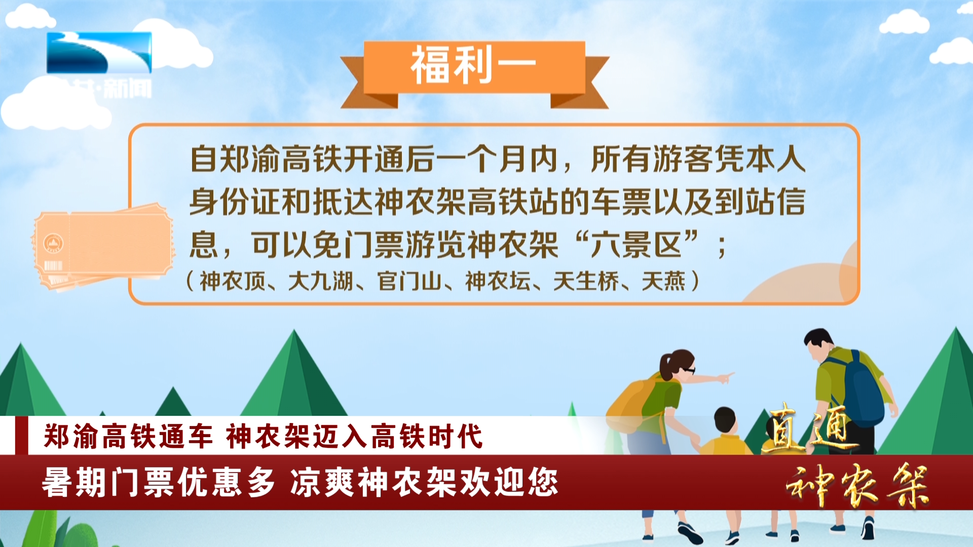 福利一:自郑渝高铁开通后一个月内,所有游客凭本人身份证和抵达神农架高铁站的车票以及到站信息,可以免门票游览神农架“六景区”(神农顶、大九湖、官门山、神农坛、天生桥、天燕);
