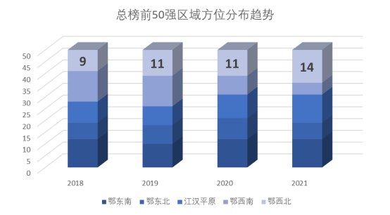 近年来,鄂西北区域各县(市、区)以县级融媒体中心为主力军,不断推进县域政务融合传播建设向好发展。2021年度,鄂西北近八成县(市、区)入围总榜前五十强,在全省各区域中遥遥领先。