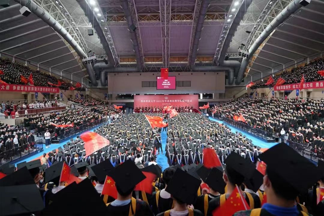 与祖国同行,与新时代共进。6月22日上午,华中科技大学2022届本科生毕业典礼在光谷体育馆顺利举行。2022届本科毕业生齐聚光谷体育馆,共享荣耀时刻,全场齐唱校歌《华中科技大学校歌》共祝华中科技大学70周年华诞,祝福母校。