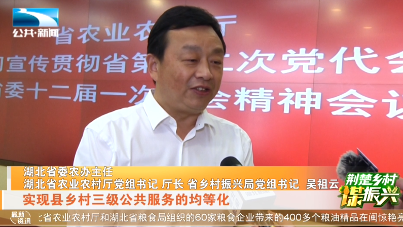 湖北省委农办主任,省农业农村厅党组书记、厅长,省乡村振兴局党组书记 吴祖云:“(党代会)报告里面讲到了,我们让农民增收,农民致富是一个重点,全面地推进一二三产业的融合发展,我们要加大县、乡、村这三级基础设施的建设力度,同时要推进公共服务的均等化,要服务下沉、平台下沉。我们的农民不仅要在生产端获得利益,更重要的是今后在我们供应链、价值链这一端,通过稳定的联农带农机制获得更多的增值收益。”