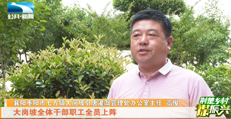 襄阳枣阳市七方镇大岗坡引唐灌溉管理处办公室主任 高俊:“大岗坡全体干部职工全员上阵,昼夜不停,连续奋战8天8夜,到6月6日下午完成清淤任务3500立方,为大岗坡灌区抗旱灌溉提供了坚实用水保障。”