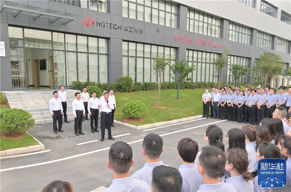6月28日,中共中央总书记、国家主席、中央军委主席习近平在湖北省武汉市考察。这是28日下午,习近平在武汉华工激光工程有限责任公司车间大楼前,同企业职工亲切交流。新华社记者 李涛 摄