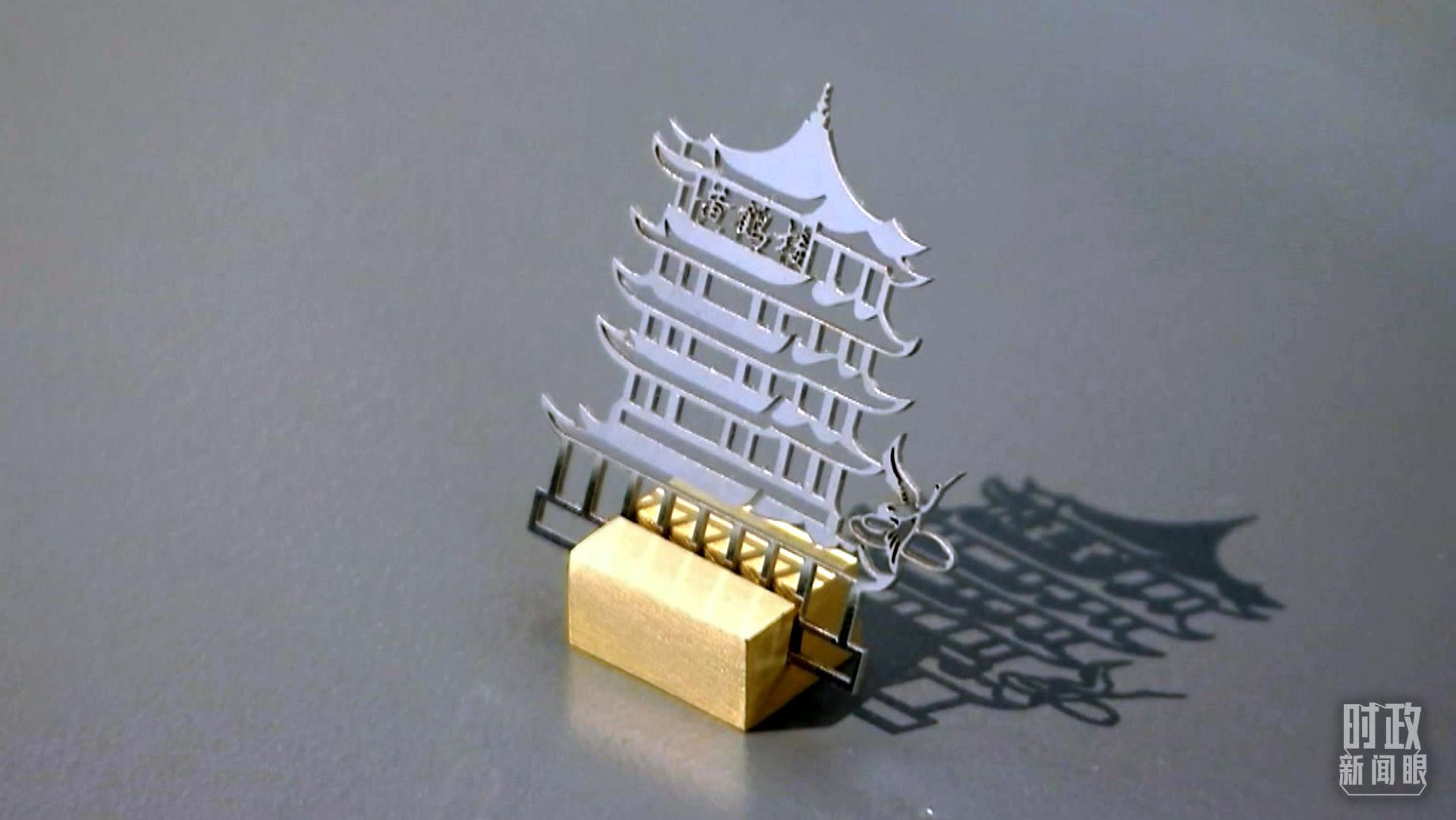 △华工激光制作的“黄鹤楼”模型。(总台央视记者段德文拍摄)