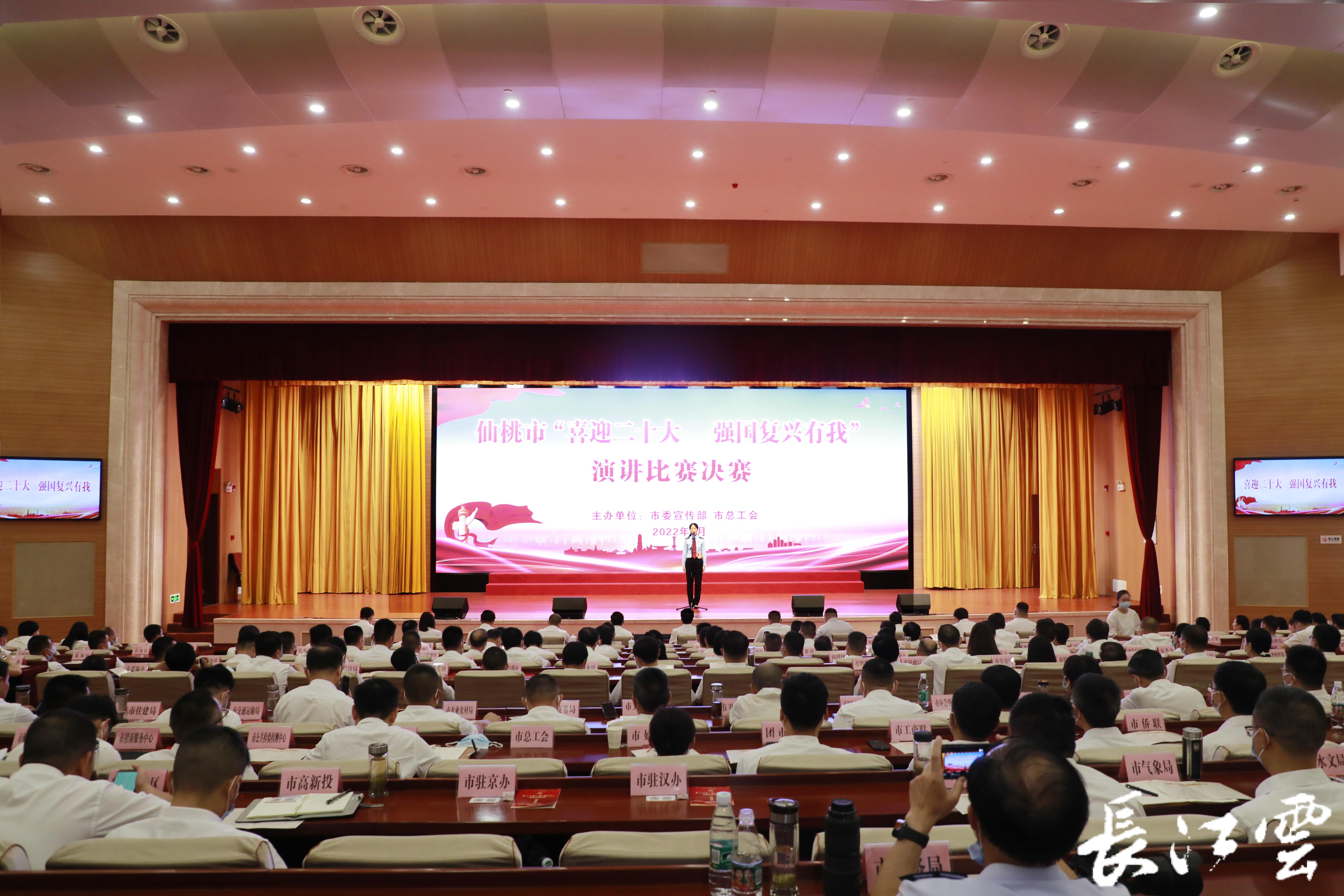 6月30号,仙桃市“喜迎二十大•强国复兴有我”演讲比赛决赛在市委礼堂举行。