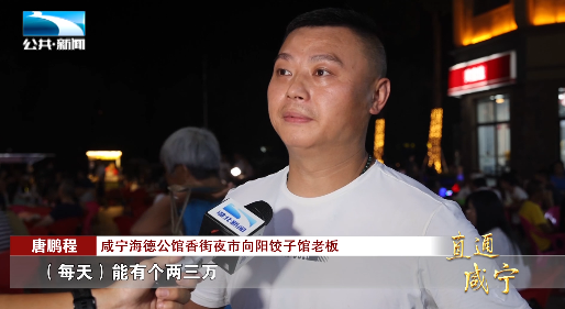 咸宁海德公馆香街夜市向阳饺子馆老板 唐鹏程:“现在我们的人流量应该每天可以达到五六百,甚至有时候多的时候七百都有可能,营业额也差不多接近翻了50%,(每天)能有个两三万。”