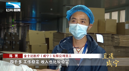 金士达医疗(咸宁)有限公司员工 陈宽:“收入蛮好的,四千多。工作稳定,收入也比较稳定,心里也比较踏实。”