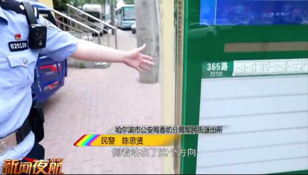 怀疑到小朋友想找回家可能会坐公交,所以我和我的同事就沿途沿着公交站再找,发现小朋友是侧着站在了这里,所以我们车往这个方向走的时候没有看到,当车开过这儿的时候正好我回头,看到小朋友站在这里,指着这个公交车365(说)我要回家。
