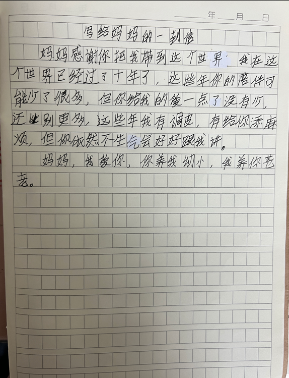 今天,“少年领读者·一封家书”编辑组收到了来自武汉市东西湖区金银潭小学的刘彦博同学写给妈妈的一封信。