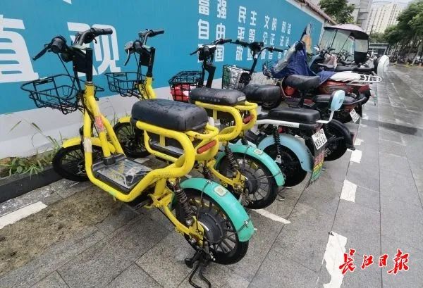 4日下午,记者在地铁二号线广埠屯站A出口附近看到,仍有几辆芒果电单车与其他共享单车停放在一起,且可以正常扫码骑行。对此,武汉市交通运输局提醒,市民在三环内看到这类共享电动车,建议不要缴纳押金或扫码骑行,一方面是避免造成违规骑行,另一方面也是规避后期退费难的风险。