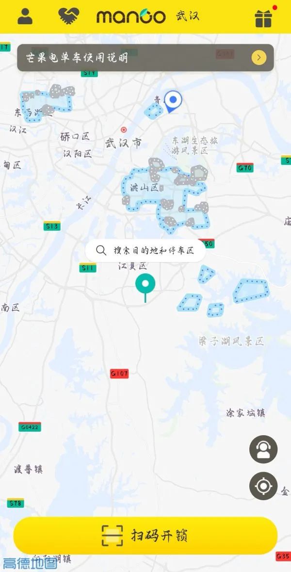 记者了解到,此前芒果电单车等共享电动车在武汉市主要区域均有投放,但根据相关规定,目前共享电动车只能在三环外运营、骑行。