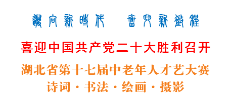 由省老龄办、省卫生健康委、省委老干部局、省民政厅、省文化和旅游厅、湖北广播电视台联合主办的湖北省第十七届中老年人才艺大赛,于2022年3月21日启动,经过县市初审,地市复核,逐级推荐报送,截止5月20日全省3539人4060件作品参加大赛,其中:781人935件作品参加诗词比赛,1468人1576件作品参加书法比赛,652人723件作品参加绘画比赛,638人826件作品参加摄影比赛,涌现了一大批喜迎中国共产党二十大胜利召开和纪念爱国卫生运动七十周年的优秀作品。