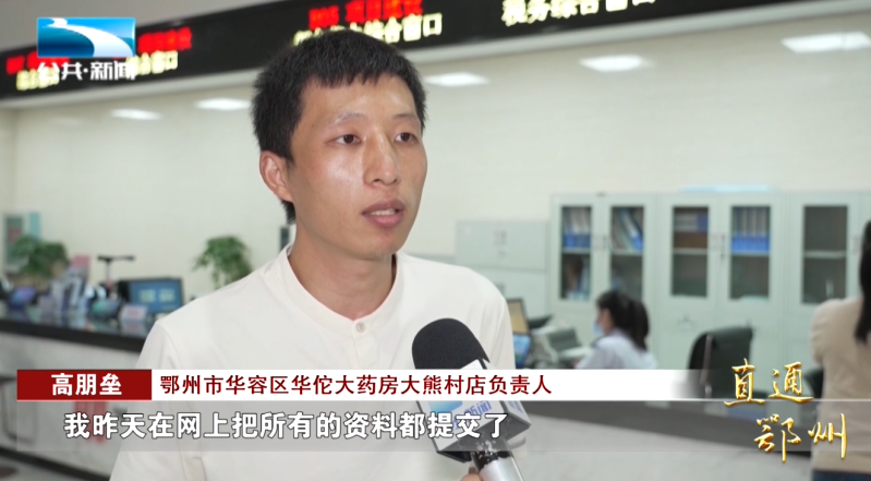鄂州市华容区华佗大药房大熊村店负责人 高朋垒:“我昨天在网上把所有的资料都提交了,然后政务中心就打电话给我,说今天可以过来取证,我需要先填一个承诺书,就可以拿到证了。”