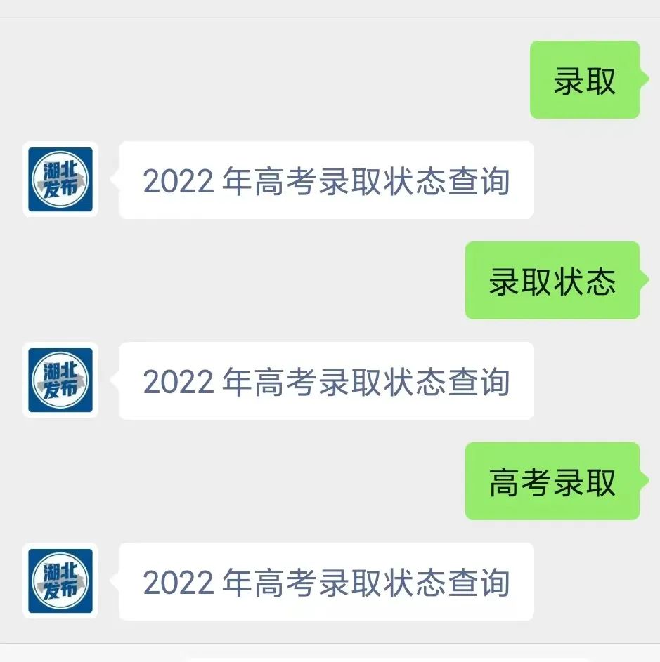 关注“湖北发布”公众号,后台输入“录取”、“高考录取”、“录取状态”任一关键词,点击回复链接。