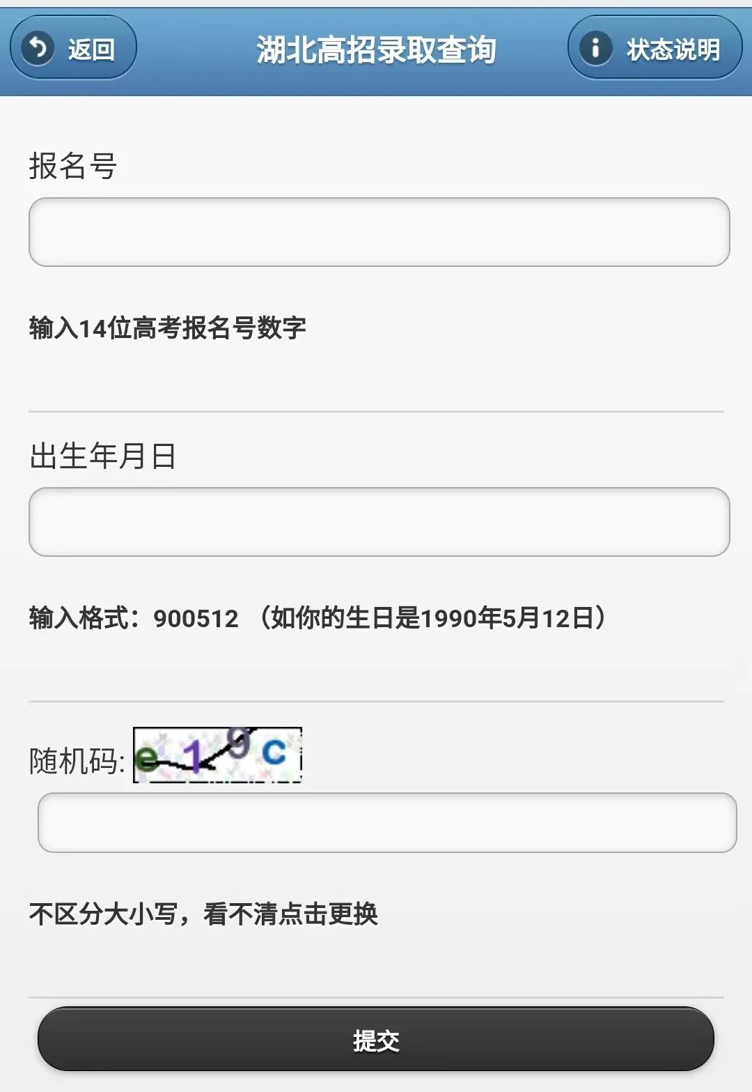 输入考生相关信息,填写验证码,即可查询考生录取状态。
