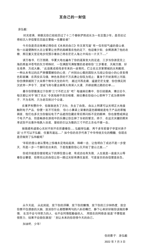 至自己的一封家书