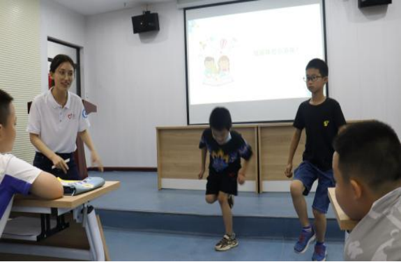 随后,志愿者老师介绍了“钢腿美少女”——牛钰的故事。老师通过双腿蹲和单腿蹲的游戏,让小朋友们简单地体验牛钰生活的不易,帮助他们理解“自信”,明白“自信的人最美丽”这个道理。