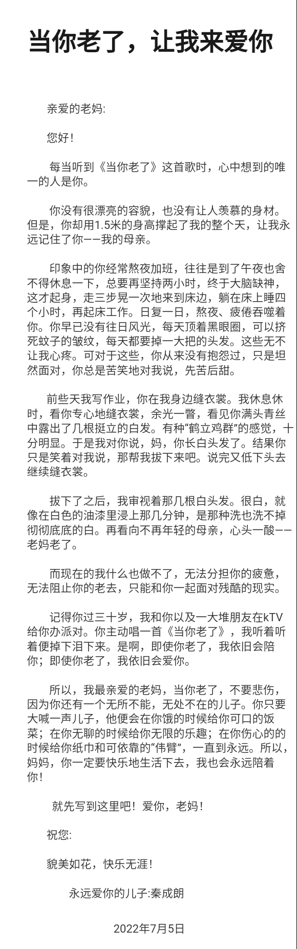 今天,“少年领读者·一封家书”编辑组收到了来自武汉市新洲区邾城街中心小学秦成朗同学的一封信。