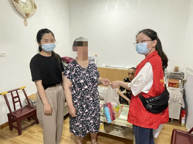 7月11日上午,武汉市武昌区粮道街街道残联链接湖北省残疾人福利基金会,安排大学生志愿者入户探访,为花园山社区困难残疾人送上洗发水、沐浴露、清洁剂等爱心物资,炎炎夏日让辖区残疾人感受到了“阵阵清凉”。