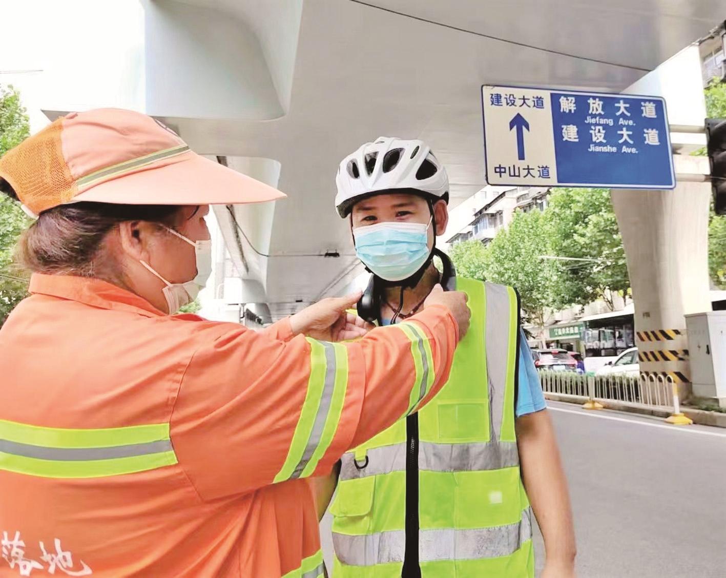 环卫工配备便携挂脖式风扇 楚天都市报极目新闻记者李辉 卢成汉摄