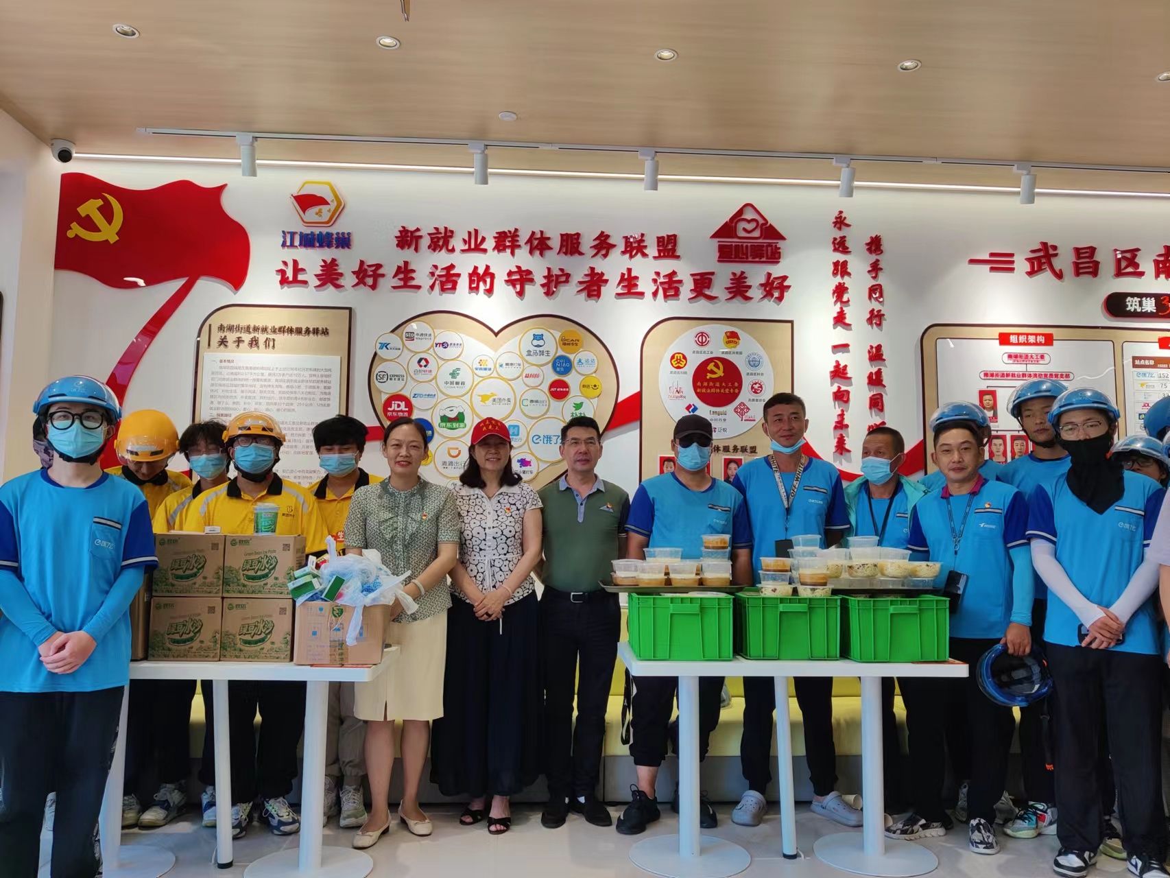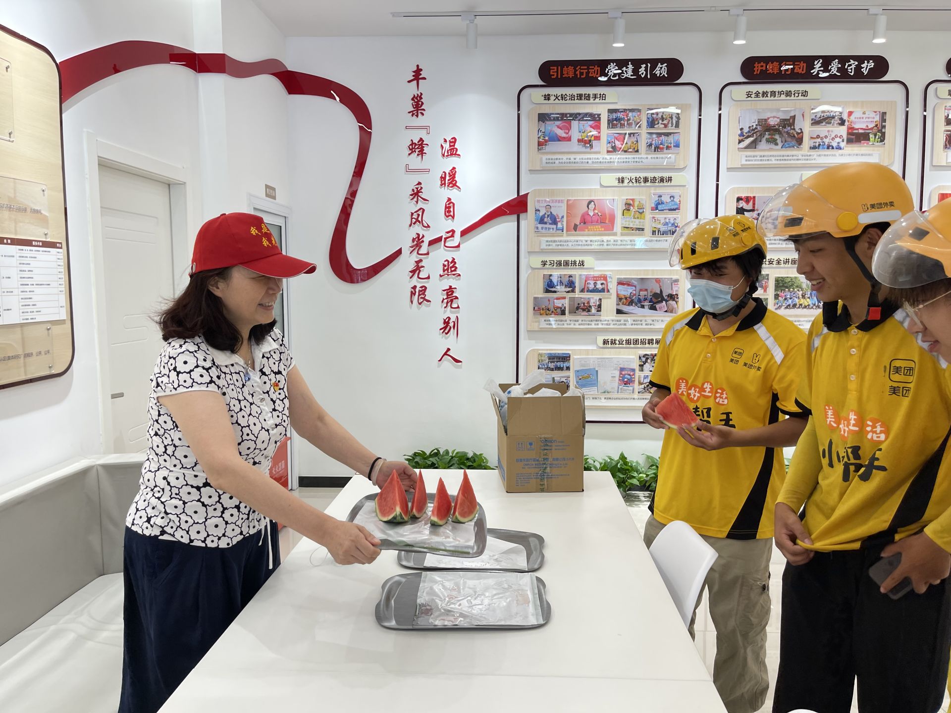 炎炎夏日送清凉,点点关爱沁人心。7月12日,武昌区南湖街道联合辖区爱心企业在新就业群体服务驿站开展了“酷暑送清凉”的活动,对辖区内坚守在高温下的外卖骑手们表示慰问和感谢,也借此活动来优化辖区内营商环境,共建辖区和谐温度生活。