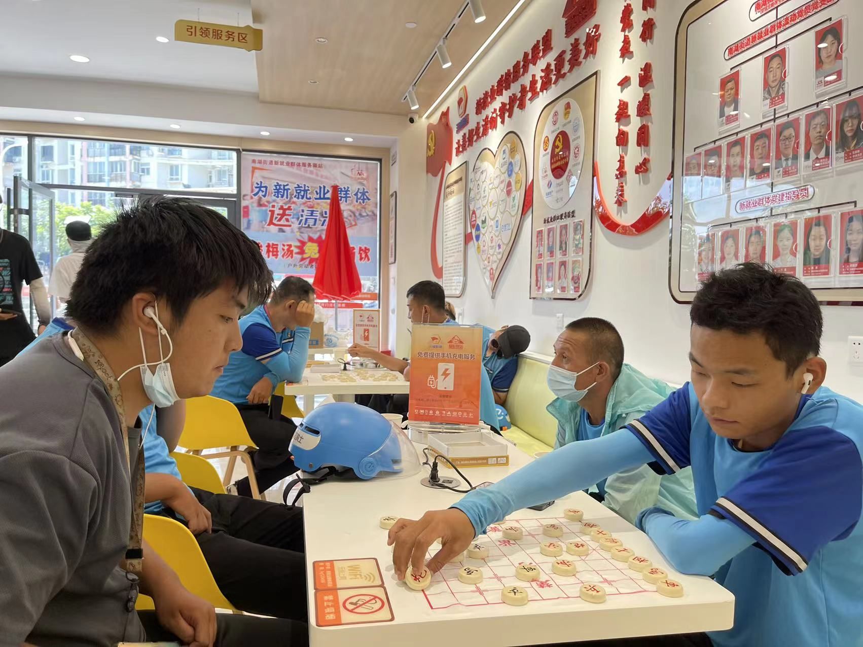 入夏以来,武汉气温最高值达40度,面对滚滚热浪,外卖骑手们始终坚守在自己的岗位上,在大街小巷上,到处都穿梭着他们的身影。为此,武昌区南湖街道联合刘胖子、中商超市以及社区卫生服务中心等辖区爱心企业,在新就业群体服务驿站为外卖骑手们提供了西瓜、绿豆沙冰、酸梅汤以及解暑药品包等相关物资。活动现场来了近50名骑手,大家品尝着美味的西瓜,喝着可口的酸梅汤和绿豆沙冰,还有凉面给大家果腹。驿站里同时提供围棋、象棋等游戏供大家娱乐,现场的小哥们各个不亦乐乎。