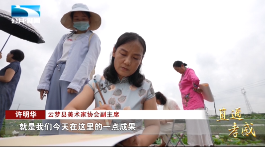 云梦县美术家协会副主席 许明华:“这个卡片上荷花和荷叶,就是我们今天在这里的一点成果。我们希望大家都到这里来,感受一下这里荷花的美。以后我们可能还会来到这里继续写生。”