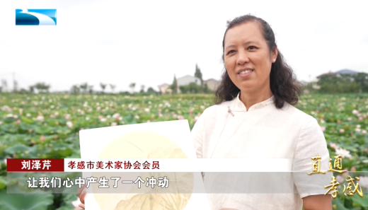 孝感市美术家协会会员 刘泽芹:“这么美丽的景象,让我们心中产生了一个冲动,就是想把它画出来的那一个冲动,我们就用自己的画笔来表现荷花的美。”