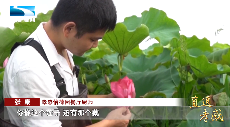 孝感怡荷园餐厅厨师 张康:“小时候我们村里都是这种小荷塘,里面种的都是这种荷花,在这里上班,就是有点怀念童年的时候。”
