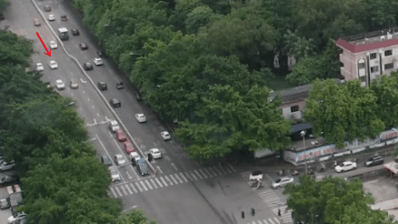 监控画面显示,一辆白色小车在行驶过程中一个“S”形走位冲向正在等红绿灯的小货车,由于撞击猛烈,小货车打横与前方红色小车发生碰撞,红色小车又继续撞上前车。