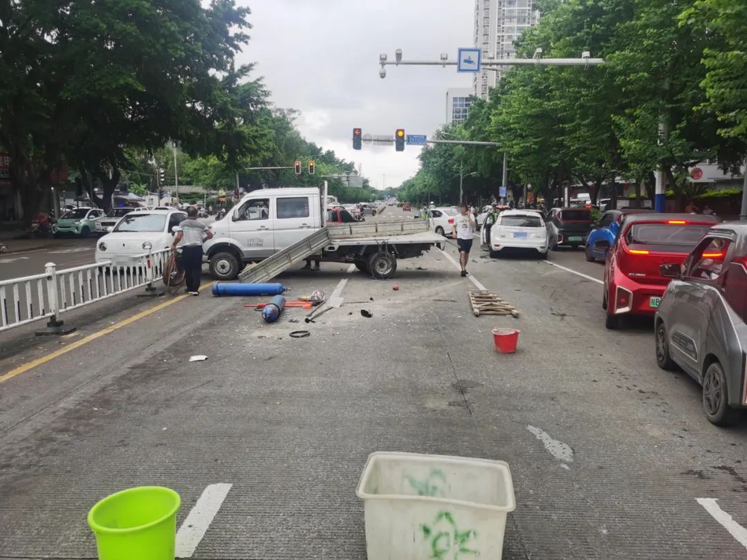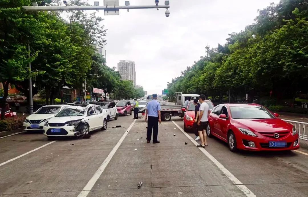 7月6日上午8时许,广西柳州一路口发生一起多车相撞事故。