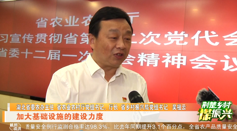 湖北省委农办主任,省农业农村厅党组书记、厅长,省乡村振兴局党组书记 吴祖云:“推进一二三产业的融合发展,加大基础设施的建设力度,来实现我们县、乡、村三级的公共服务的均等化,狠抓共建、共治、共享的乡村治理,持续为农民增收而努力,全面巩固脱贫攻坚的成果。”