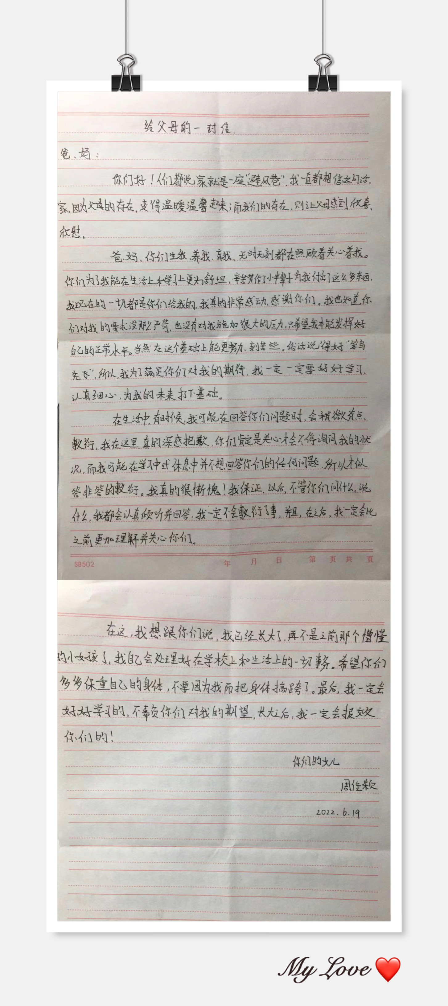 给父母的一封信