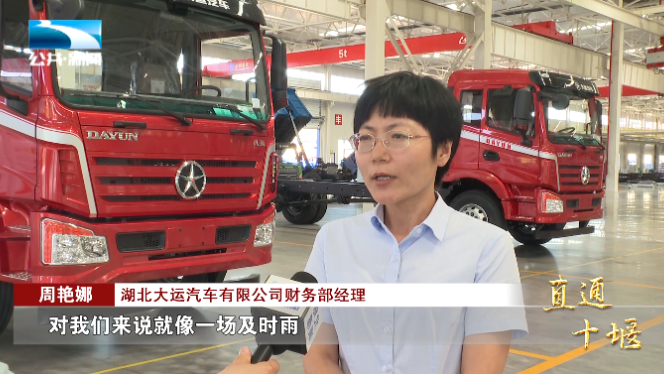 湖北大运汽车有限公司财务部经理 周艳娜:“这份退税款,对我们来说就像一场及时雨,有了这部分真金白银的退款支持,我们企业在产品研发 技术改造升级,以及提升企业的市场竞争力方面,就更有信心。”