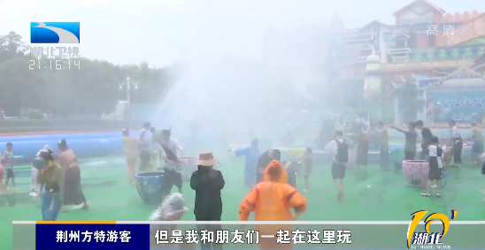 荆州方特游客:“虽然我衣服打湿了,但是我和朋友们一起在这里玩,玩得很快乐,玩得很开心,而且也很凉快!”