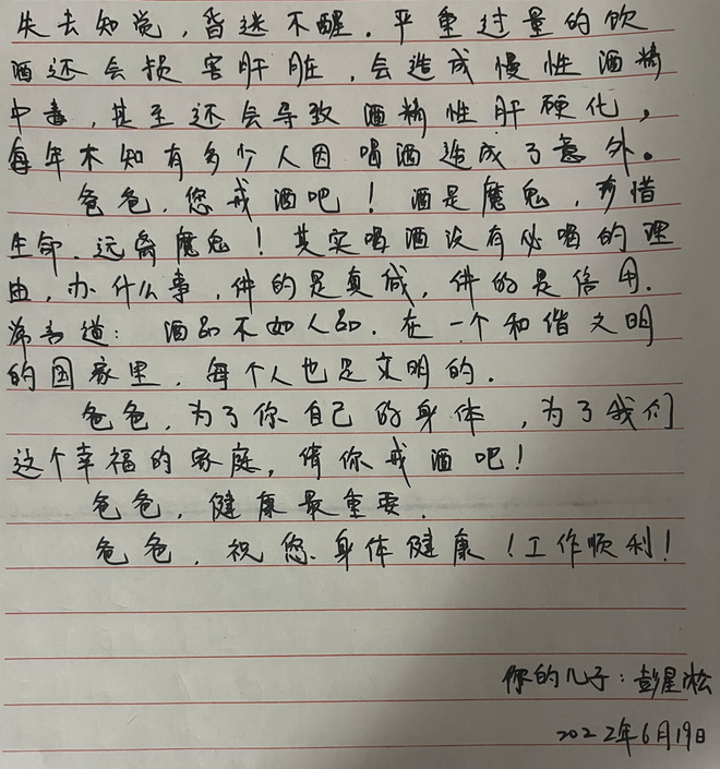 今天,“少年领读者·一封家书”编辑组收到了来自武汉市汉铁初级中学彭星淞同学写给爸爸的一封信。