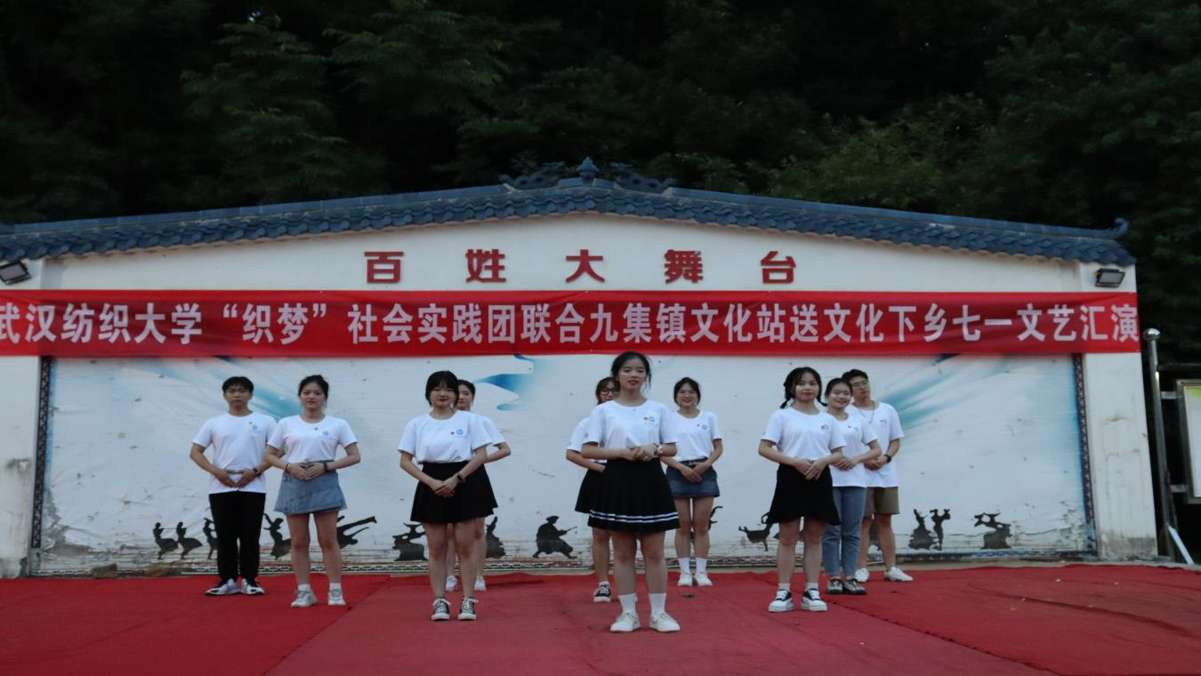 清脆的歌声、曼妙的舞姿、铿锵的誓言、美轮美奂的舞台让人流连忘返,处处洋溢着青春欢腾的气息,武汉纺织大学“织梦”实践团联合九集镇文化站、吴集中心小学送文化下乡七一文艺汇演正在双泉村如火如荼地开展。精彩纷呈的“文化盛宴”送到百姓家门口,丰富了基层的文化生活,满足了老百姓日益增长的精神文化需求,展现了当地儿童和纺大学子的青春风貌。