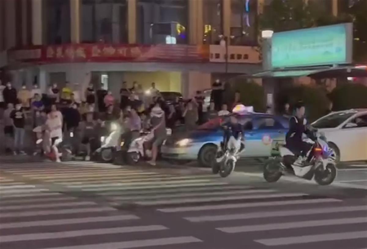 现场视频显示,几名年轻人骑着电动摩托车在马路上飙车,甚至有“翘头行驶”的姿势,路边围了很多人。记者了解,此事发生在山东临沂市通达路。