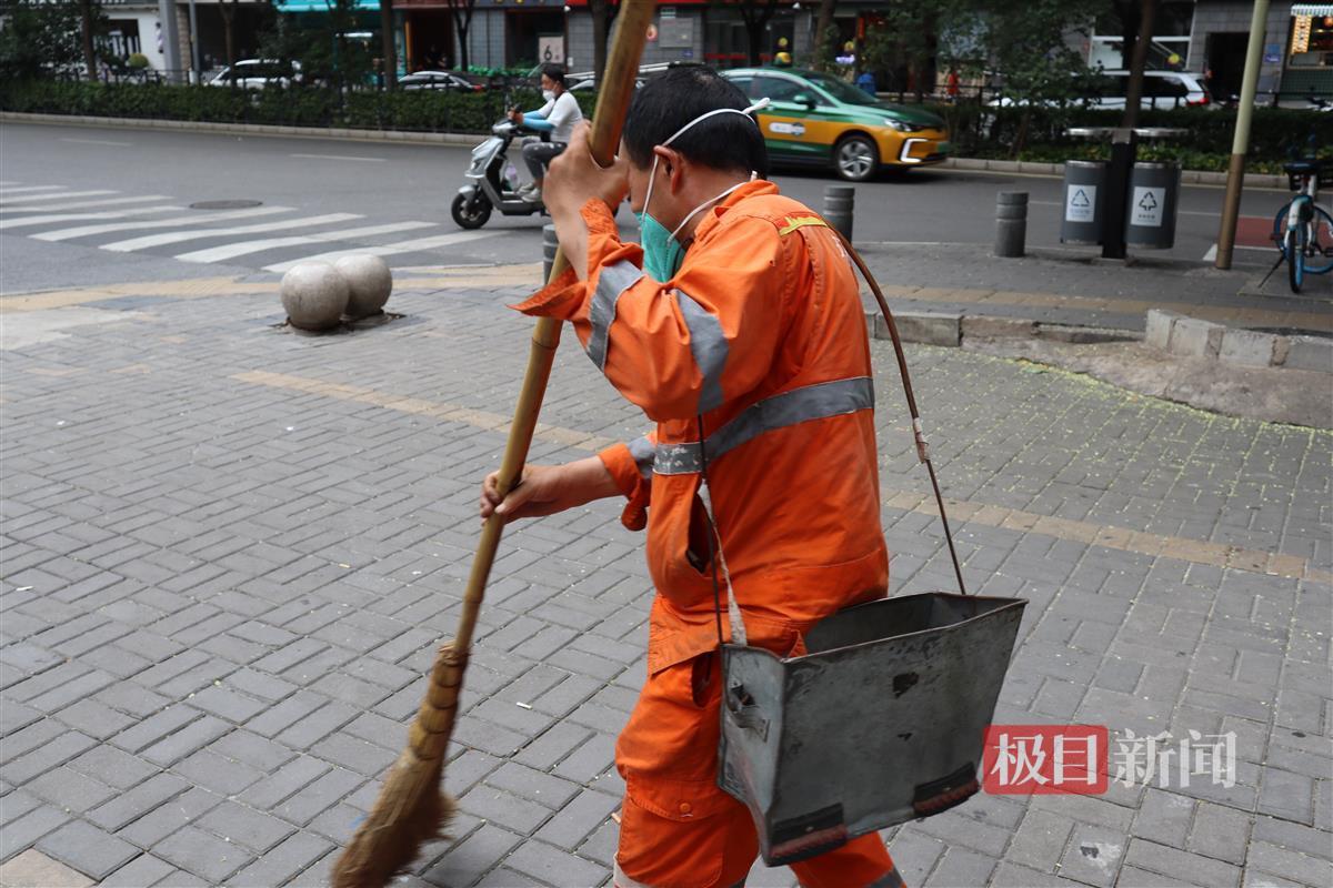 “热了就赶快搞完自己负责的这一块,然后去休息一下。”赵庆说,环卫工每隔15分钟就需要巡视一遍自己负责的300米街道,因此往往是前脚坐下喝了口茶,后脚就需要重新上街。