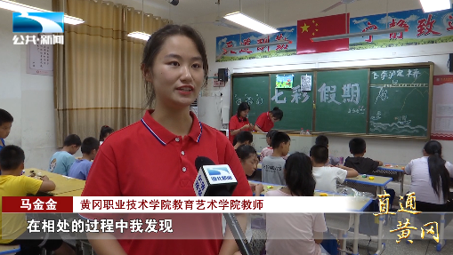黄冈职业技术学院教育艺术学院教师 耿子涵:“我们是来自黄冈职业技术学院,学前教育专业的13名志愿者,我们非常热爱教育事业,本次来到聚星小学,是希望我们能把学校里面学到的知识学以致用,给孩子们带来一个快乐的暑假。”