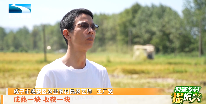 咸宁市咸安区农业农村局农艺师 王广贤:“成熟一块,收获一块,耕整一块,播种一块,确保早稻颗粒归仓,晚稻种满种足。”