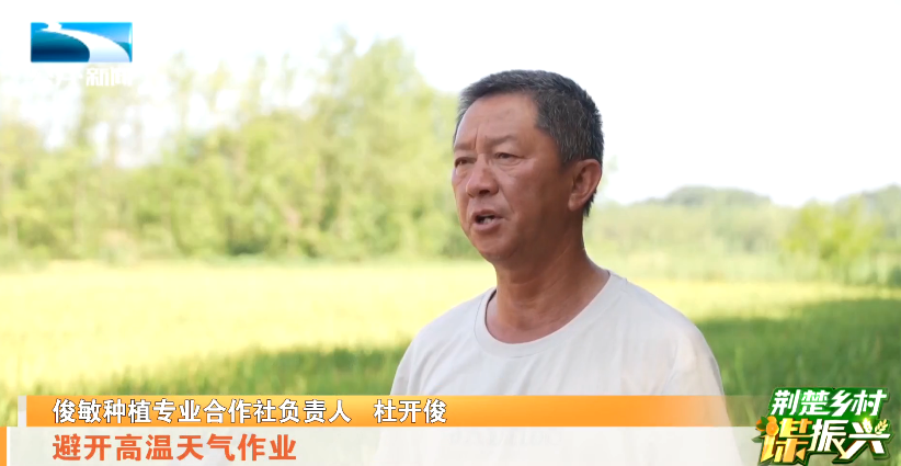 咸宁市咸安区俊敏种植专业合作社负责人 杜开俊:“机械方面全部投入使用,时间安排方面,一般是早上八点半到十一点,再就是下午四点到晚上九点多钟,避开高温天气作业。”