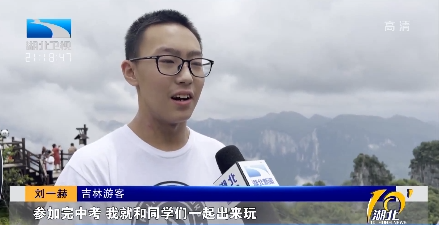 吉林游客刘一赫:“参加完中考,我就和同学们一起出来玩。云雾缭绕,就像人间仙境一样,我们所有人全都免票。”