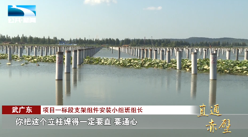 项目一标段支架组件安装小组班组长 武广东:“你把这个立柱焊得一定要直,要通心,再一个就是电机不能装反,每一组上要有三个电机带动它,这个活也是个细活。”