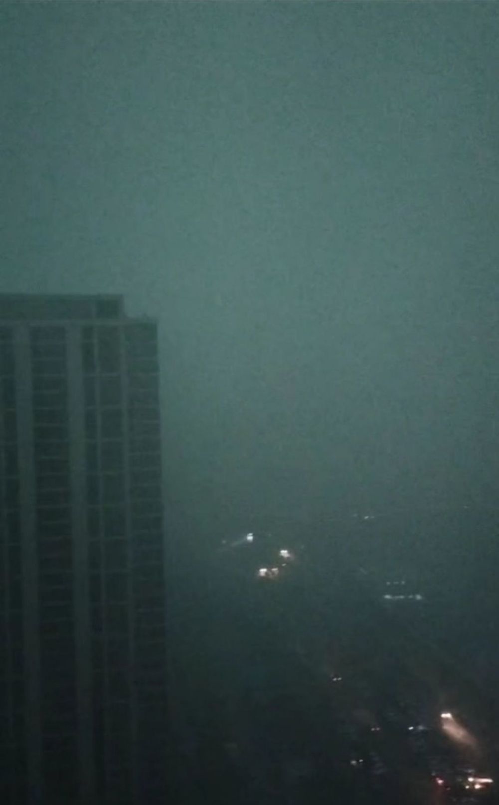 大河报消息,6时以后,郑州市区天雷滚滚,暴雨如注。其实,在暴雨发生前,郑州市区的天空变成了绿色。而罕见的绿色天空,也给这场暴雨做了较为惊悚的背景。