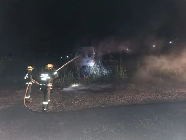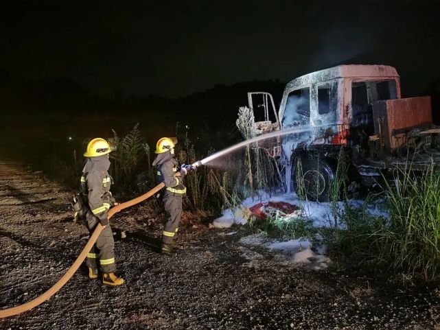 经过7分钟的紧张扑救,最终成功将火势扑灭。为防止复燃,消防员继续使用挠钩将驾驶室车门撬开,对驾驶室内部进行清理,确认现场车辆无复燃可能。