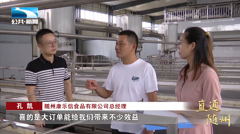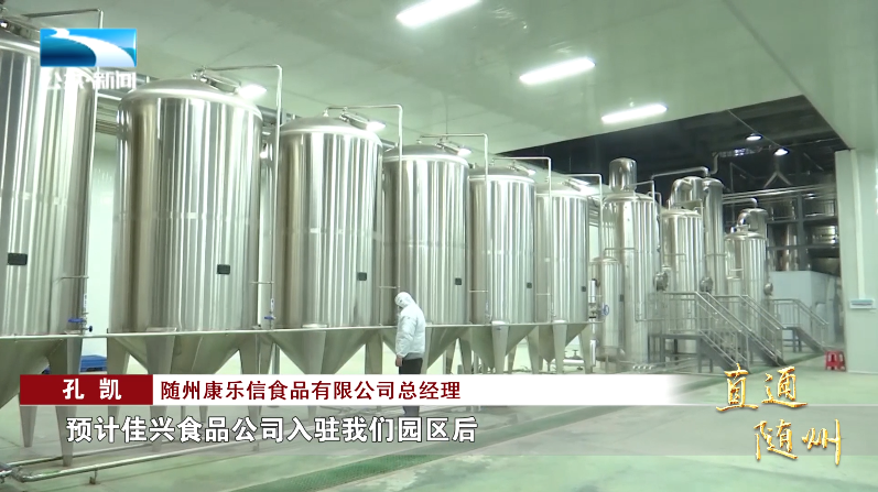 随州康乐信食品有限公司总经理 孔凯:“不到半年的时间实现了扭转,预计佳兴食品公司驻入我们园区后,我们产值将增加30%。”