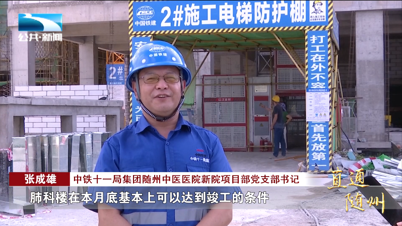 中铁十一局集团随州中医医院新院项目部党支部书记 张成雄:“肺科楼在本月底基本上可以达到竣工的条件,住院综合楼、医技楼、门诊楼、综合保障楼主体结构已经全部封顶。”