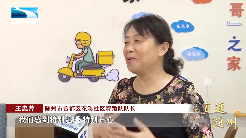 随州市曾都区花溪社区舞蹈队队长 王忠芹:“领着姐妹们在这儿玩一天,中午要是不想回去的话,我们的微波炉可以在这热饭,开水什么都有,感谢社区给我们提供了优越的条件,我们感到特别温暖,特别开心。”